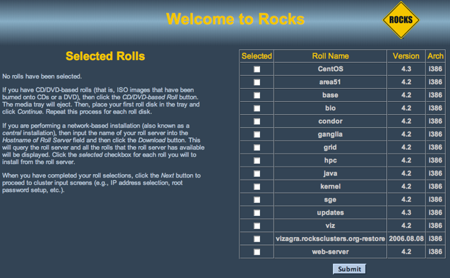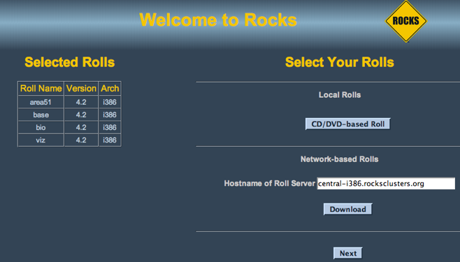The installer will then retrieve the chosen rolls, rebuild the distribution with all rolls included, then install the packages. Finally, the installer will proceed with the post-section and other elements of a standard frontend install.