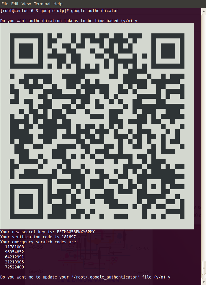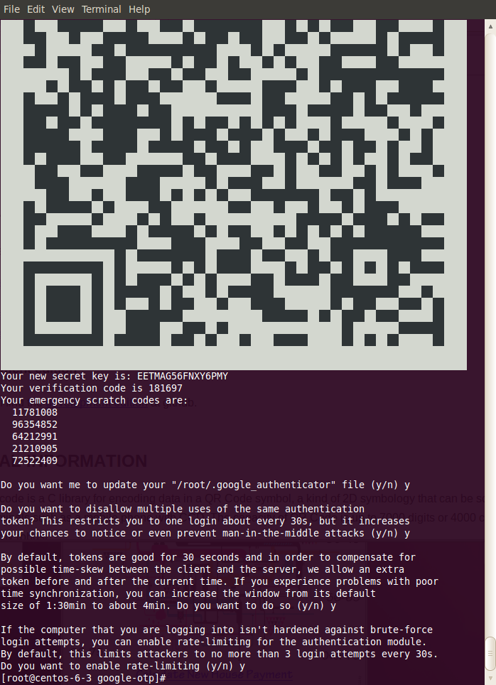The following example shows a screenshot of google-authenticator